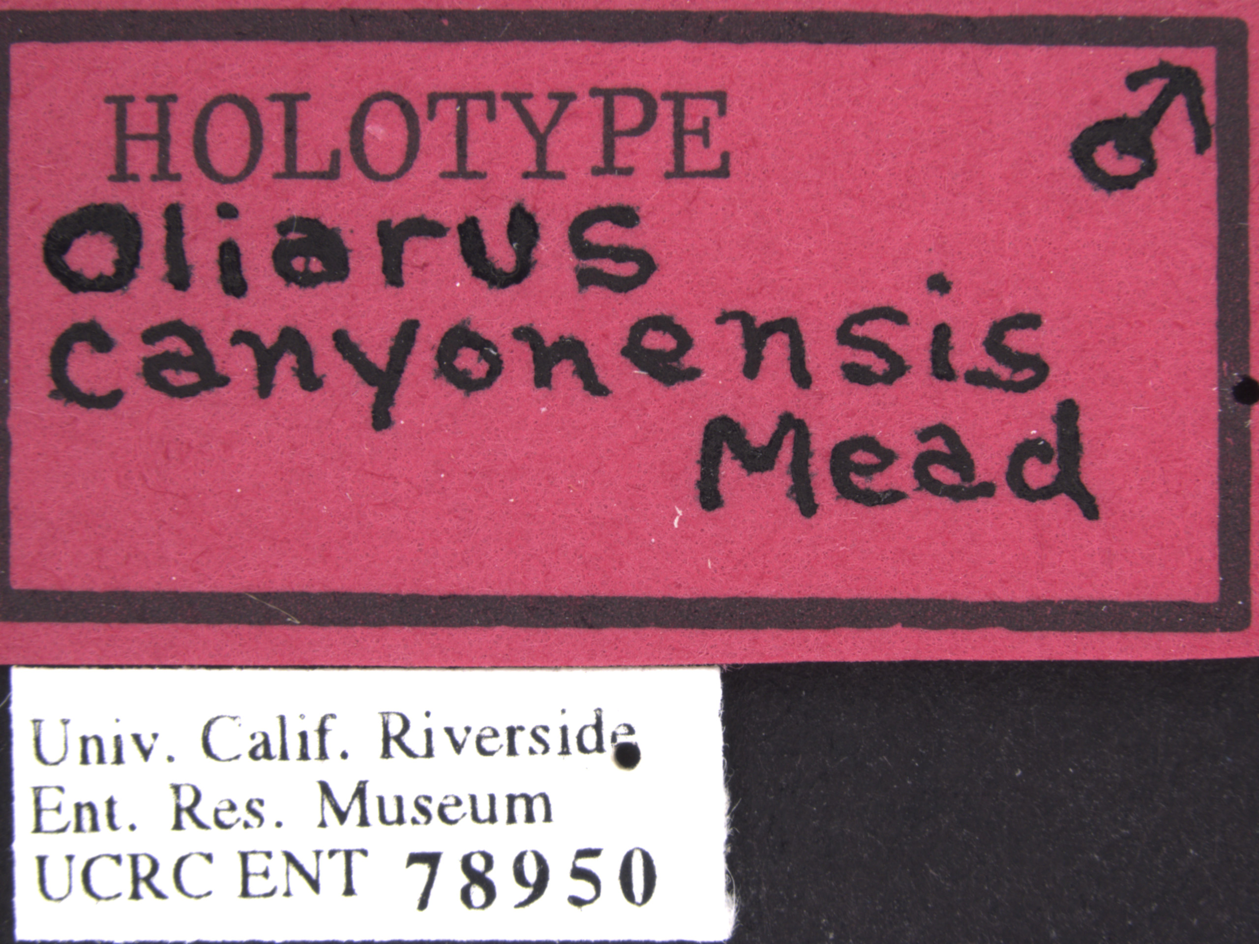 Oliarus canyonensis Mead & Kramer label 1